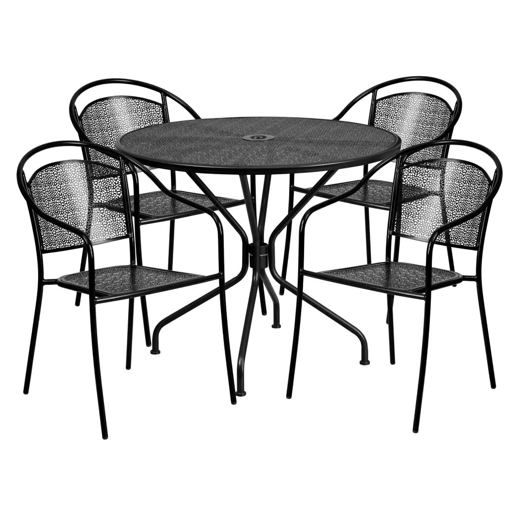 OSC Designs OSPATIOSETRNDBK Round Steel Patio Set, 5-Piece, Black Features: