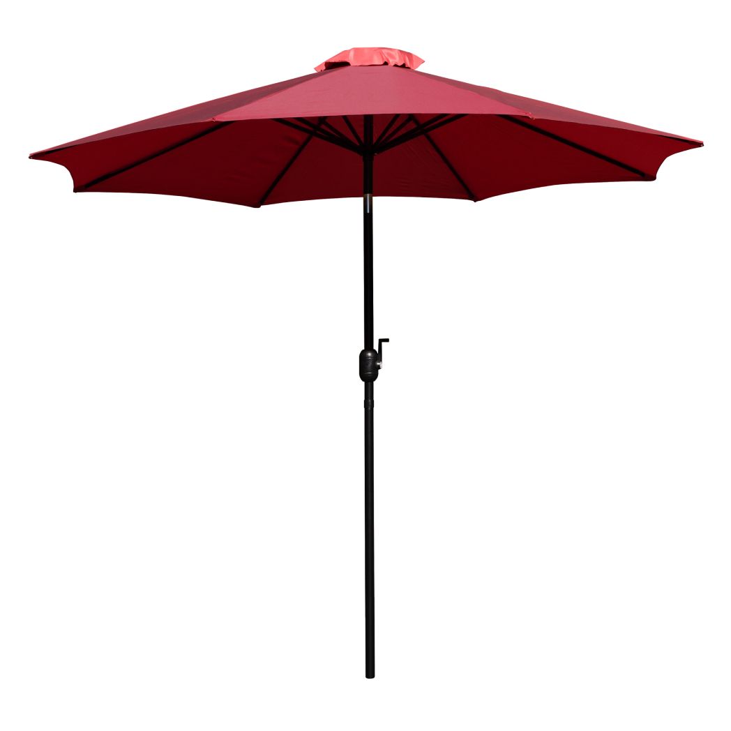 The OSC Designs OSUMBRED is just what you need. The polyester round top blocks sunlight and UV rays and can make your environment feel up to 10 degrees cooler. 8 solid steel ribs give this outdoor table umbrella a uniform shape that will protect your electronic devices and pets from overheating and outdoor furniture from fading due to sun exposure. A ventilated top allows heat to escape and prevents the wind from turning your umbrella into a large kite. If you’re ready to invest in an outside umbrella for your home or business durability is a chief concern. The 100% polyester top is 30+ UV resistant to keep it looking great season after season. The 1.5 inch aluminum poles are powder coated and rust and corrosion resistant providing a long-lasting foundation that holds up to light breezes and light rain. When the sun changes position simply press the tilt button to move this outdoor patio umbrella into the perfect place to keep you comfortably shaded. If you notice your umbrella has gathered dust or the inevitable bird bomb, use a water based cleaner to remove soil.
