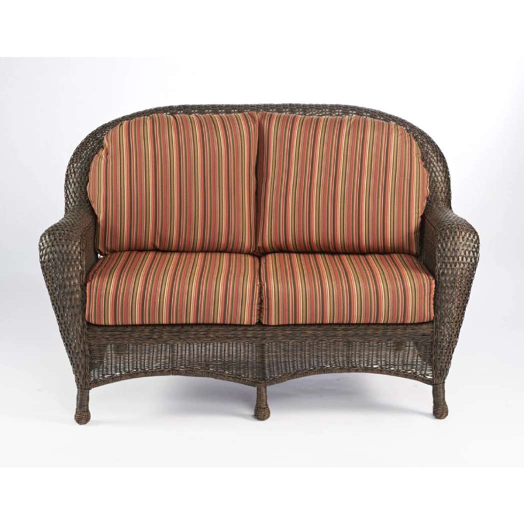 - Durable construction ensures the loveseat withstands outdoor conditions