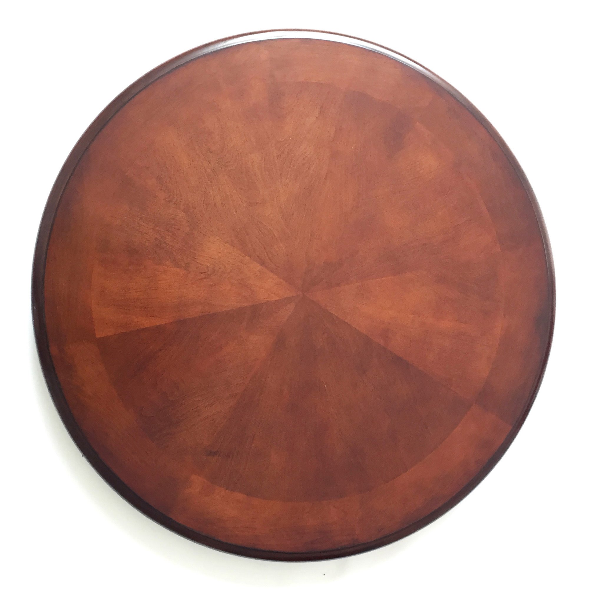 - Sunburst wood veneer tabletop and sculptured table legs with built-in leg levelers