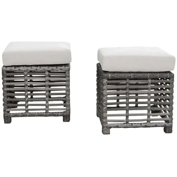 The Panama Jack Graphite collection is a hand crafted outdoor aluminum framed grouping that incorporates a greyish silver large profile HDPE synthetic wicker. Add an extra touch of relaxation with this set of ottomans. Use them alone or with coordinating pieces in the Graphite Collection. Cushion is removable for easy clean up and maintenance. Ships with outdoor polyester off-white cushions.