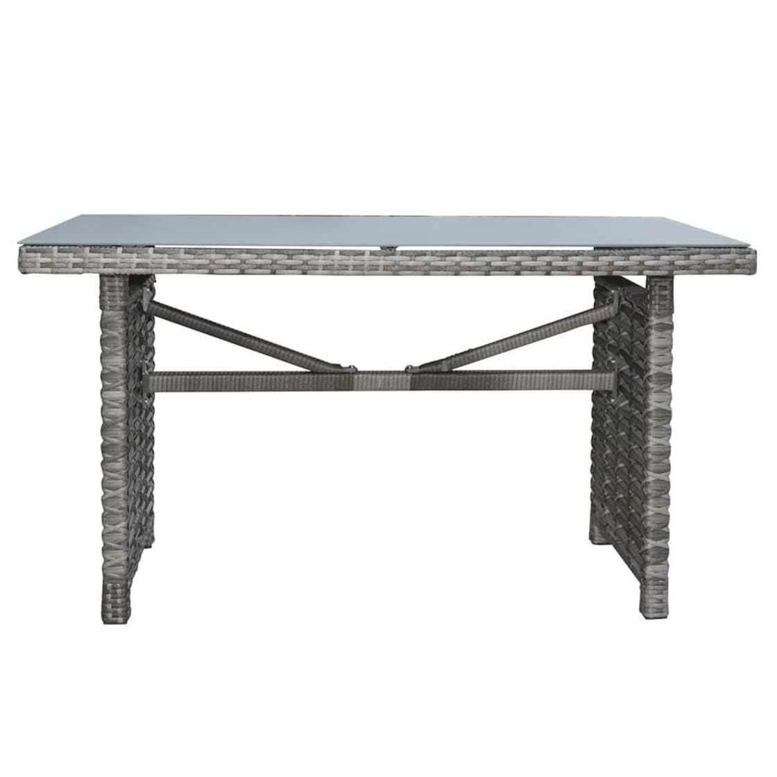The Panama Jack Graphite collection is a hand crafted outdoor aluminum framed grouping that incorporates a greyish silver large profile HDPE synthetic wicker. This table is ideal if you want to compliment your outdoor dining area with a higher table. A frosted glass top is included.