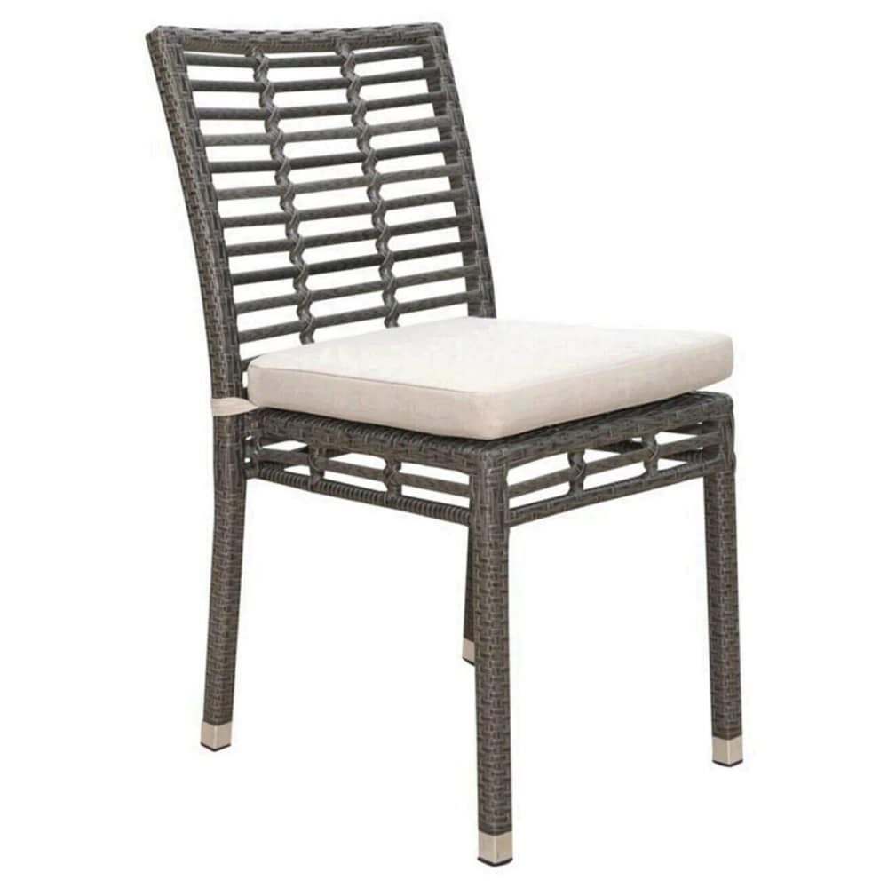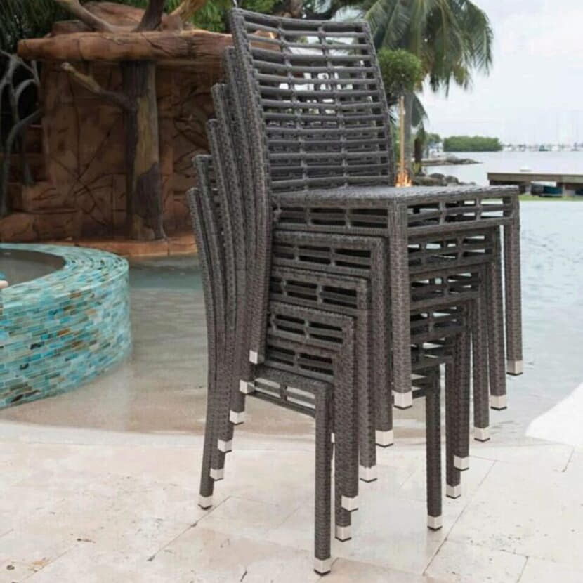 Constructed from see-through Gray fiber hand woven over aluminum frames, the Panama Jack Graphite collection will bring a sleek and modern look to your backyard or patio. Resistant to corrosion and scratching, this side chair is ideal for any outdoor dining space and can be combined with any one of the multiple dining tables the Graphite collection has to offer in order to create an outdoor dining area perfectly suited to your needs so you can dine in bliss. This option includes an off-white outdoor polyester cushion or you can choose from one of our many Sunbrella outdoor fabric options for added comfort. Additionally, the stackable design of these side chairs makes for quick hassle free storage. Please refer to swatch Image for fabric details.