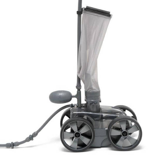 The Pentair Gray Platinum Pressure Side Pool Cleaner is a reliable and efficient pressure side cleaner that delivers the ultimate in clean. Its four-wheel design and lightweight frame provides better stability and offers four times the coverage to quickly clean in 1-3 hours. Complete with dual thrust jets, the Platinum maneuvers through the water with ease and its four-wheel drive delivers better floor sweeping and wall climbing ability for thorough performance. The front-wheel drive and heavily treaded tires provide maximum traction on inclined surfaces to assure total pool wall and floor coverage. Four wheel design prevents tipping (common with 3 wheel cleaners) for uninterrupted and unattended performance. The Platinum includes a large capacity filter bag that picks up sand and silt while its huge intake throat picks up large leaves and debris with ease. Powered by a separate booster pump, the Platinum delivers an optimum clean and is perfect for all types of in-ground pools (booster pump not included).