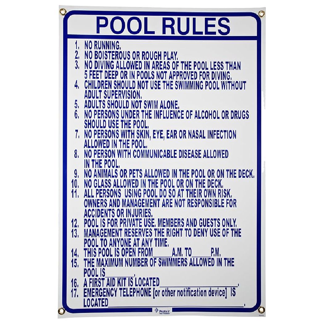Pentair R234100 Safety Sign, 24 In x 36 In, “Pool Rules” Features: