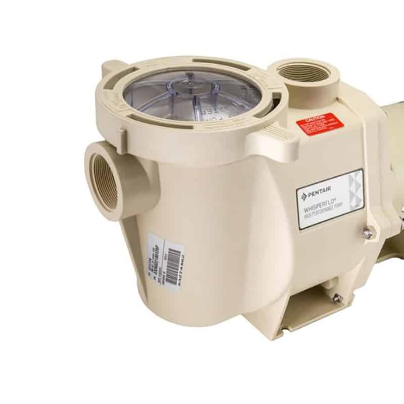 The Pentair WhisperFlo Up-Rated Energy Efficient 1-1/2HP Pool Pump delivers maximum circulation efficiency at the lowest operating cost and long, trouble-free life with minimal maintenance. Built with a legendary hydraulic design for pools and pool and spa combinations, this pump is whisper-quiet, self-priming, and built to last. The Whisperflo Advanced FunnelFlo diffuser and high-efficiency impeller maximize flow and reduce noise while the energy-efficient motor with the commercial-grade frame, rustproof stainless steel shaft, and permanently lubricated, sealed bearings uses less horsepower to produce the required flow. This pump is built with a thermoplastic housing to withstand extreme heat and resist corrosion and has heavy-duty threading for dependable worry-free connections. Its cam and ramp 1/4 turn lid makes cleaning simple and fast while an oversized strainer basket extends time between cleanings.