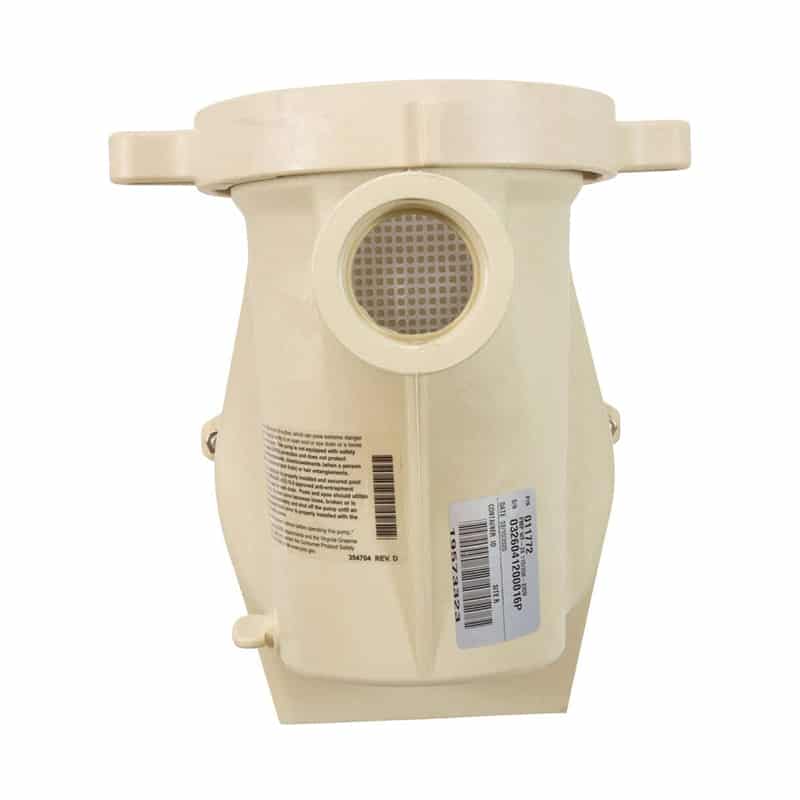 - Oversized strainer basket and volute —industry standard in pool pumps