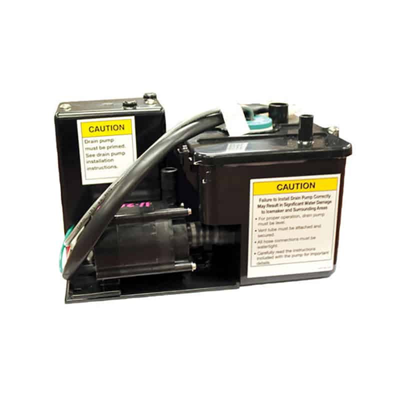 The Perlick Clear Ice Maker Drain Pump allows you to install the ice maker in an area that doesn’t have access to a floor drain.