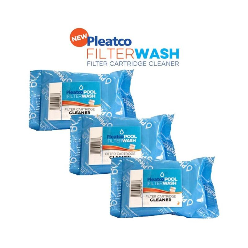 The Pleatco Pool Filter Wash Tablet is a simple to use cleaning tablet specially formulated to penetrate deeply into any reusable cartridge filter and remove the accumulated materials such as suntan lotion or oil, grease, dirt, soap scum, and other organics. This thorough cleaning allows cartridges to return to a high level of original performance without harming the filter. Clean as needed or once a month for best cartridge performance.