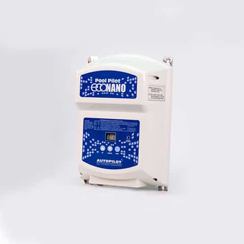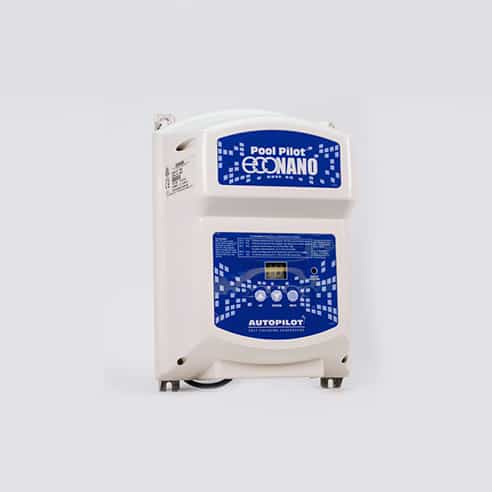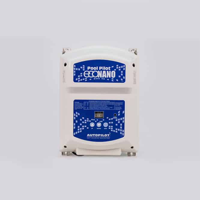 Pool Pilot Eco Nano – It’s simple to install and simple to use. Pool Pilot® Eco Nano features push button controls with a scrolling two-digit display. The Eco Nano will maintain pools up to 25,000 gallons with the PPC1 inline cell with flow switch.
