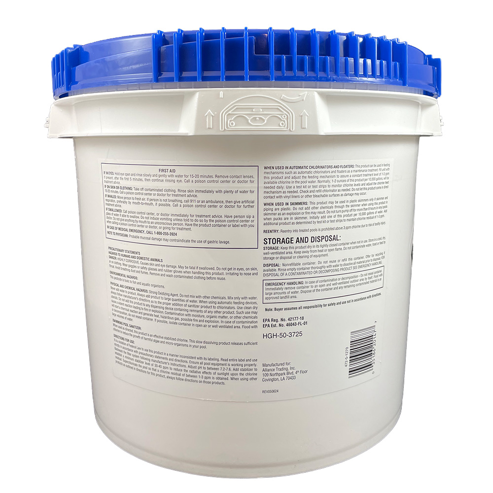 Pool Season Chlorinating Tablets – 8oz. Wrapped 25 lb Bucket Features: