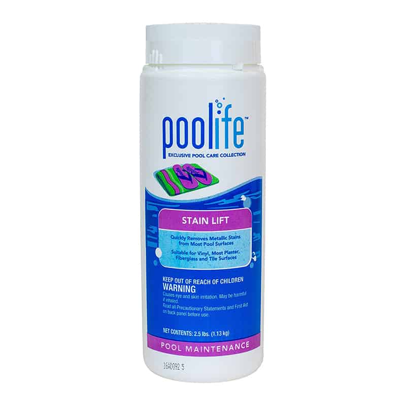 Poolife Stain Lift is a concentrated, granular stain remover for swimming pools. Use as directed to quickly remove stains caused by copper, iron, and manganese. After stains are removed, follow up with the weekly addition of poolife® Stain Stop.
