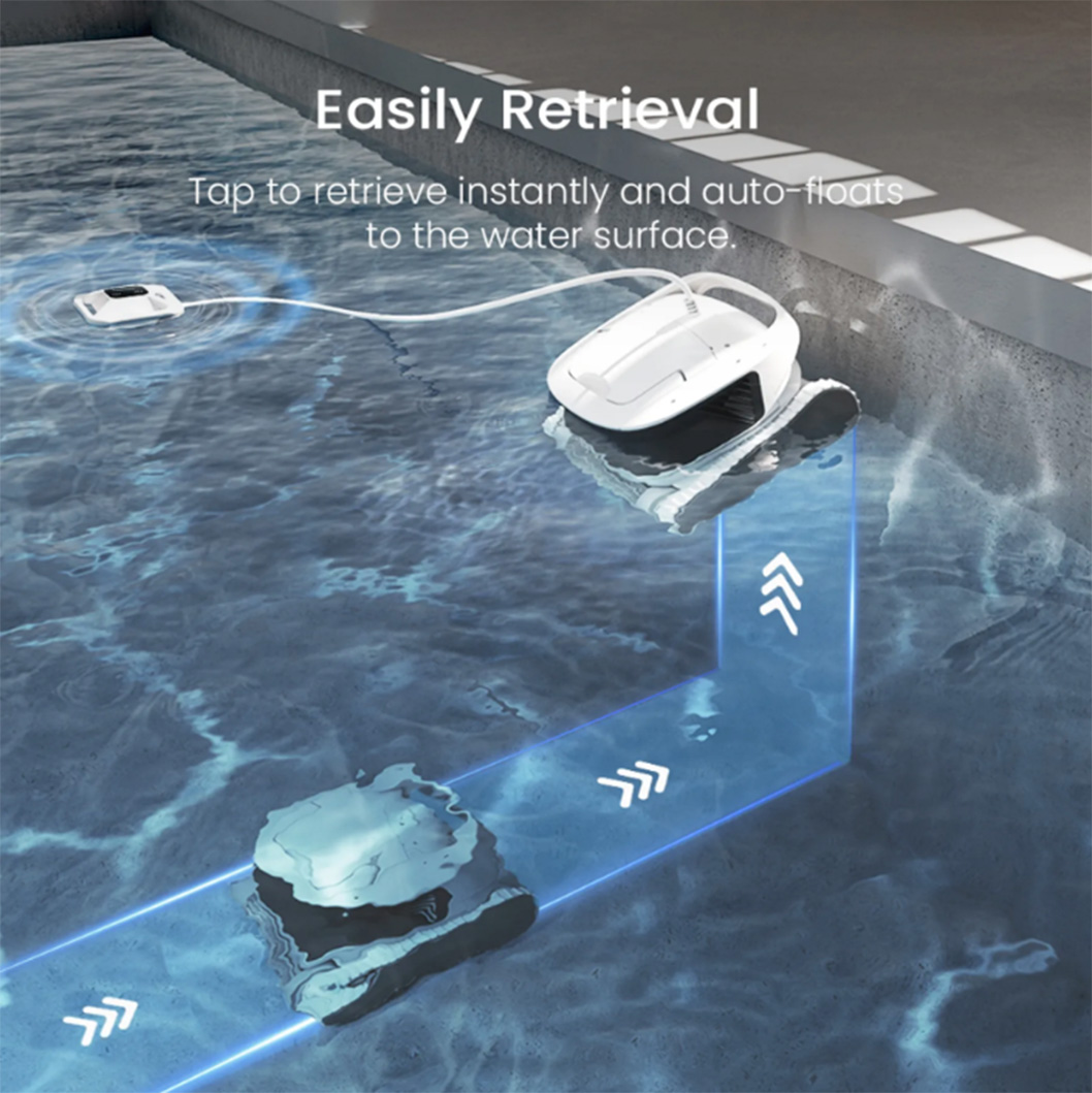 The included battery buoy enhances overall performance by managing and stabilizing the power cable during operation. By reducing cable drag and tangling, the buoy allows the cleaner to move more freely, especially in deeper pools or pools with varying contours. This results in improved efficiency, smoother directional changes, and more consistent surface contact throughout each cleaning cycle. Cable lift and support also help reduce long-term strain on the power cord, supporting system longevity.