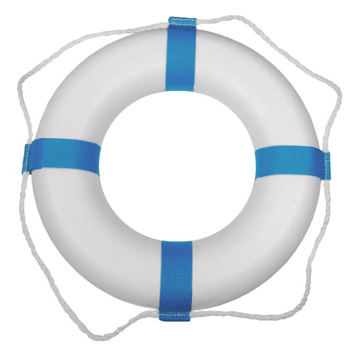 PoolStyle PS372 20″ White and Blue Ring Buoy (Decorative) Features:
