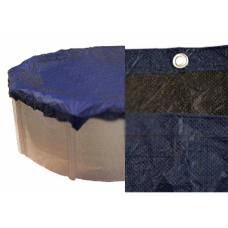 The PoolTux 7731AU is for for 28-feet round above ground pool (cover is 31-feet round) 5-mm, blue on black triple laminated polyethylene with heat sealed seams for added strength. Edges incorporate a sewn-in polypropylene cord for reinforcement. Aluminum grommet spaced every three feet. Deluxe aluminum cable winch and vinyl coated steel lock-down cable included. 8-year limited warranty, 1-year full.