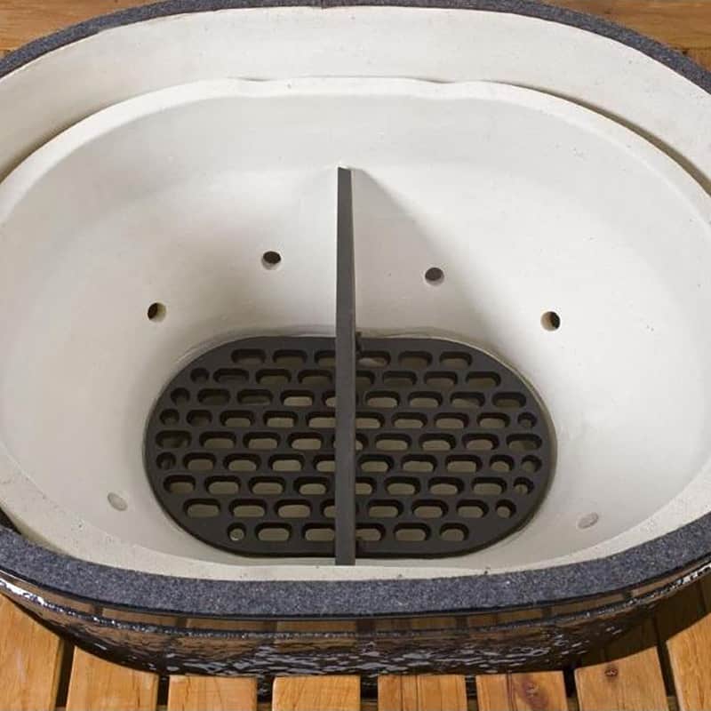 Maximize the versatility and unique shape of your Primo Oval XL 400 Grill using the Primo Cast Iron Firebox Divider for Oval XL. This heavy-duty cast iron divider fits in the center of the firebox on your Primo Oval XL Kamado Style Grill, giving you the option of having direct and indirect cooking at the same time. For smaller cookouts, you can conserve fuel by filling only half the firebox with charcoal when this cast iron firebox divider is in place. This increases efficiency and cuts down on charcoal use, saving you money.