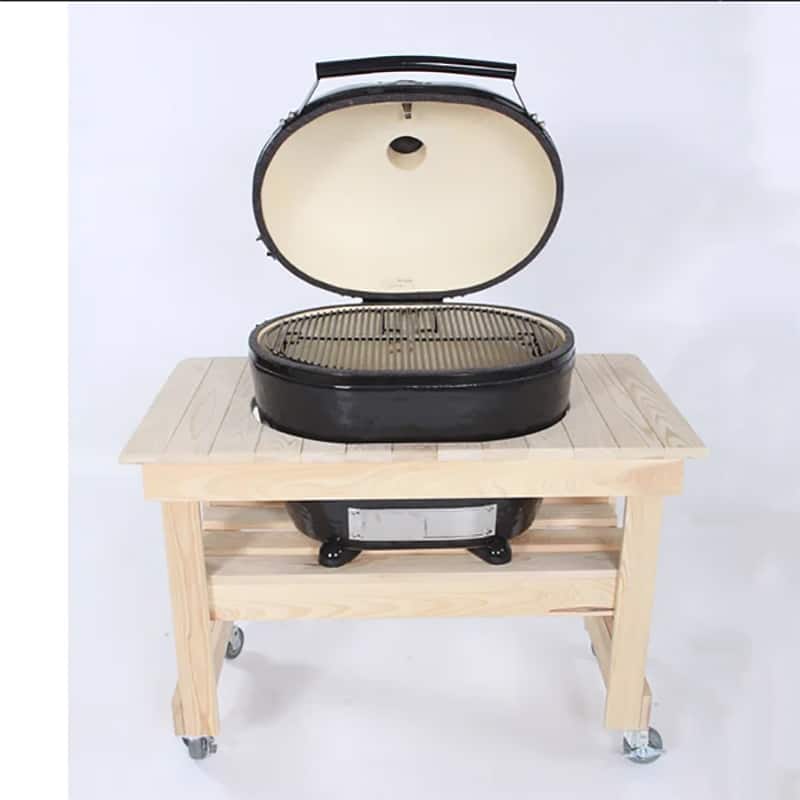 Primo Compact Cypress Table for Oval XL is a beautifully handcrafted wood table and a perfect corral option for your primo grill that requires a small space. The hand-made table is designed for durability and beauty and comes unfinished to allow further personalization. Cypress is naturally decayed, pest, and weather-resistant, making it a great option for your outdoor BBQs.