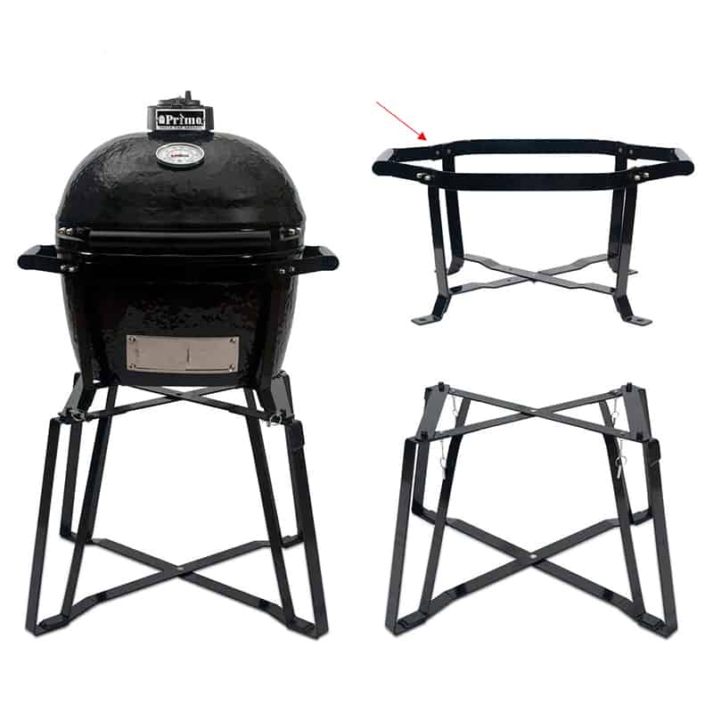 Primo GO/Take-Along Portable Cradle offers maximum portability and at-home use without the need for a grill table or cart. The Primo GO when combined with the Oval Junior and GO Base becomes the largest portable ceramic grill available. When using the Primo GO with its sturdy handles and the help of a friend you can easily take your Primo Oval Junior to a tailgate, camping or on a picnic.