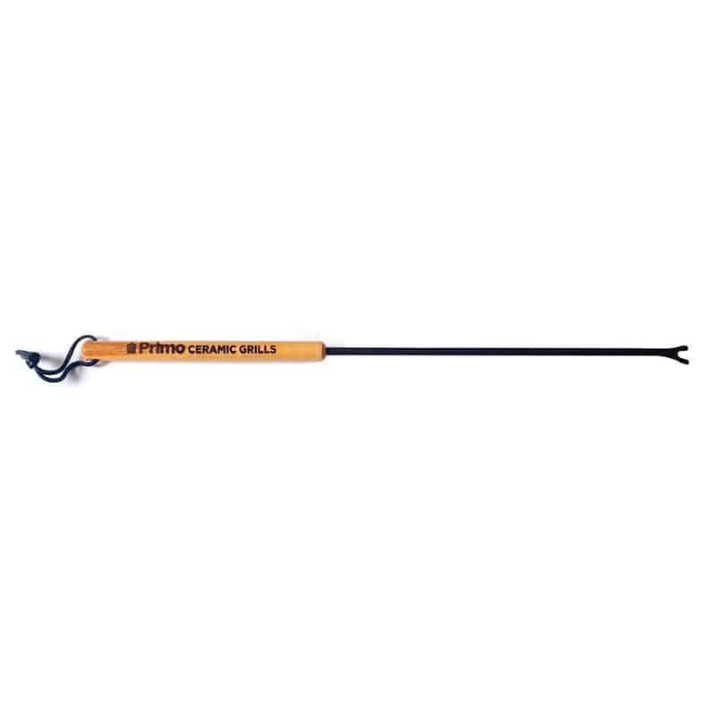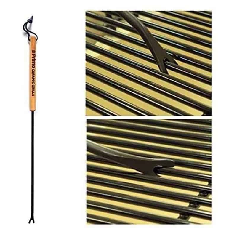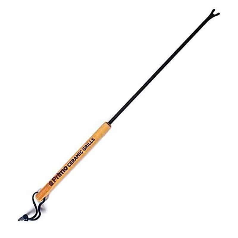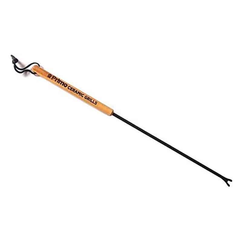 The Primo Grate Cleaning Bar is designed to last for years with a logo-branded wood handle and steel cleaning rod with a rust-resistant coating. The cleaning fork tip easily removes food residue from cooking grate rods and it will not damage porcelain-coated grates. With a simple twist, you can also clean the sides of the grate rods. The 23″ length keeps a user’s hands away from the heat of the charcoal. The Grate Cleaning Bar eliminates the need to replace stainless steel brushes and eliminates the potential health hazard of wire bristles being introduced onto the food.