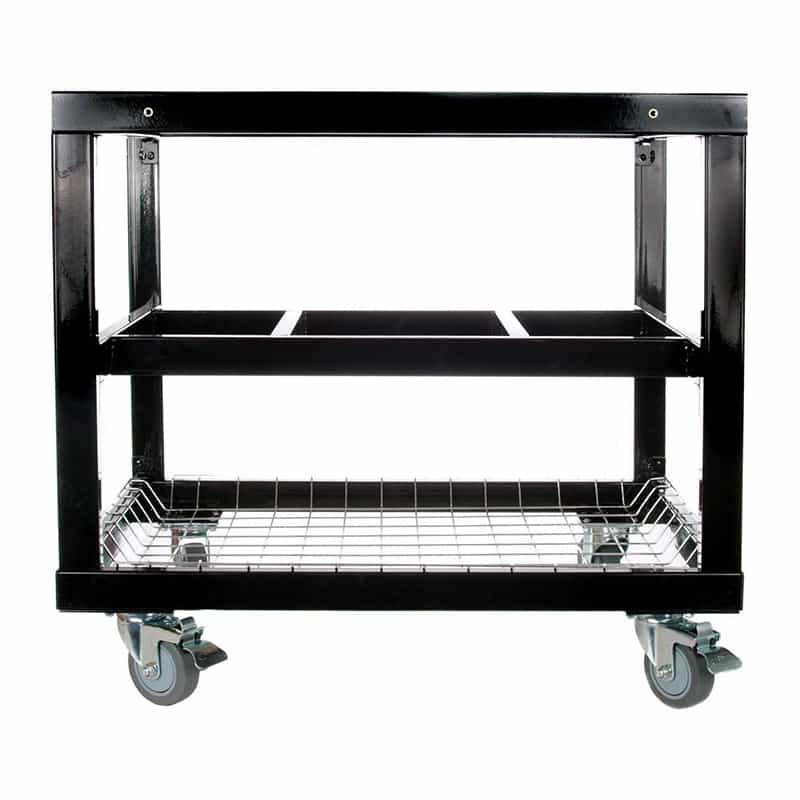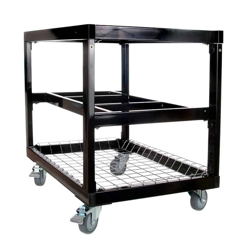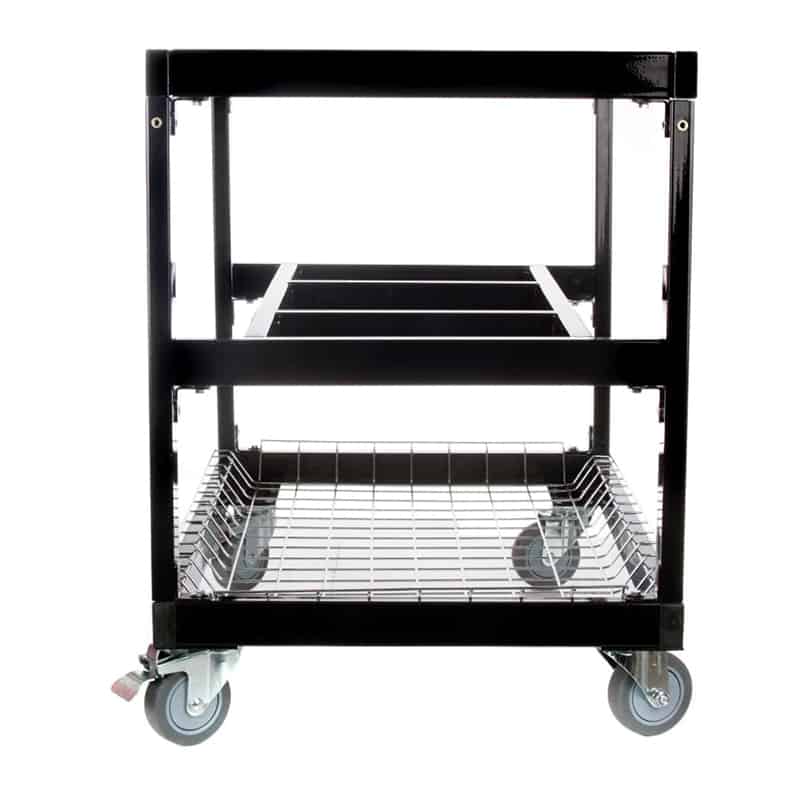 The Primo Heavy-Duty Cart with Basket for Oval JR is constructed from powder-coated steel and includes 4 heavy-duty casters and a wire basket for your additional storage convenience. This Primo cart makes the perfect addition to any deck or backyard. For use with the Primo Oval Junior. Side tables are not included but sold separately.