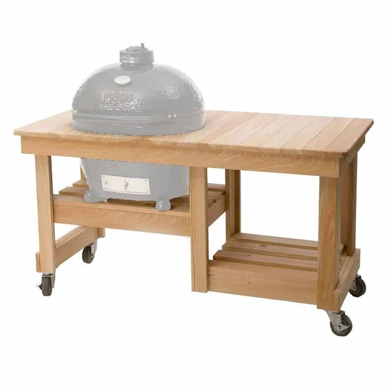 The Primo Ready to Finish Cypress Countertop for Oval XL is designed for those who need more counter space for prepping, plating, and other tasks. The table also features a built-in bottom shelf for storing charcoal and other BBQ accessories. Four revolving and lockable caster wheels roll smoothly on any patio surface and lock in place when you are ready to grill. Ceramic feet are included and need to be used when the grill sits on a combustible surface. Designed for the outdoor chef who needs more space and who enjoys the beauty of a wood table. Comes unfinished.