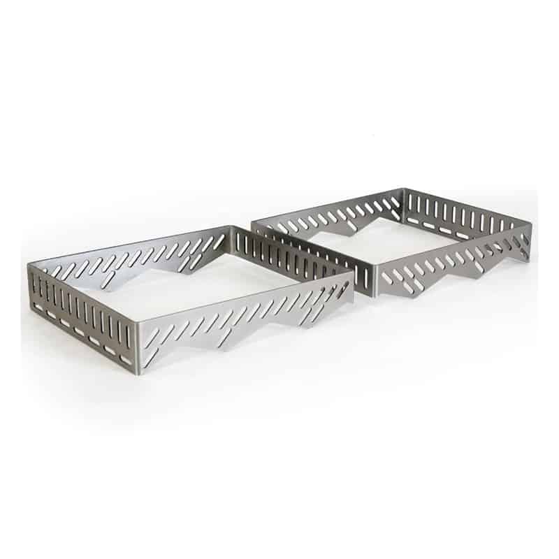Primo Stainless Steel Heat Deflector / Drip Pan Rack allows you to place aluminum pans in your grill to catch flavored juices from your favorite meats as it cooks, as well as keep them from falling directly onto the burners and prevent flare-ups. Use with the optional ceramic heat reflector plates for a nice, even, low and slow barbecue. The drip pan racks make clean up from grilling easy.