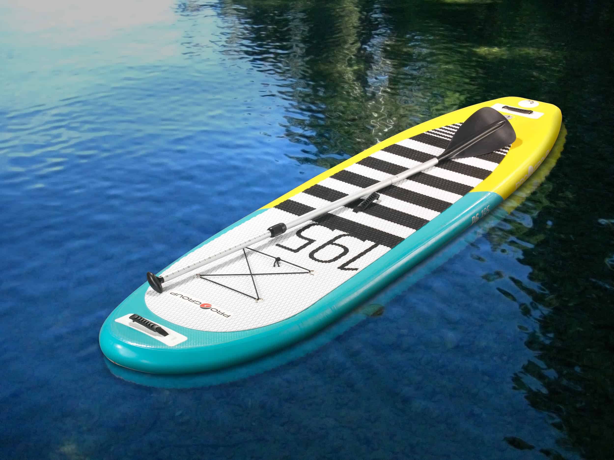 - BUILT FOR ENDLESS ENJOYMENT – Constructed from the highest quality reinforced PVC material and drop-stitch, this blue-yellow designed stand up board will surely last as long as you remain happy on the water.