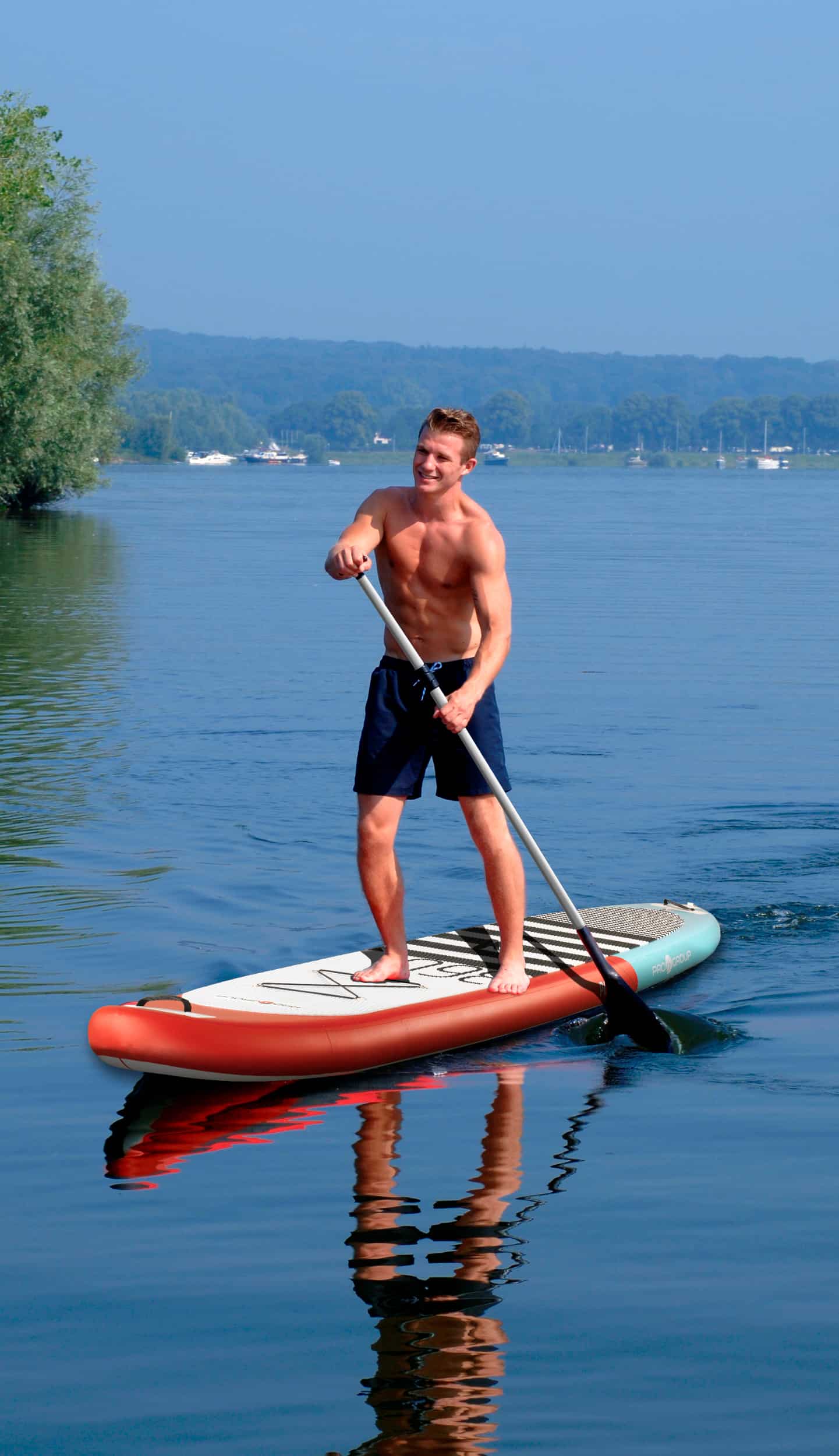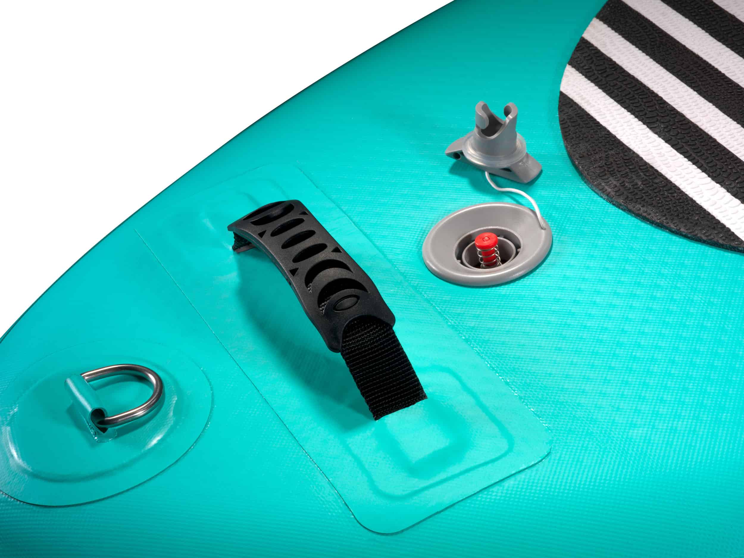 - BUILT FOR ENDLESS ENJOYMENT – Constructed from the highest quality reinforced PVC material and drop-stitch, this teal-red designed stand up board will surely last as long as you remain happy on the water.