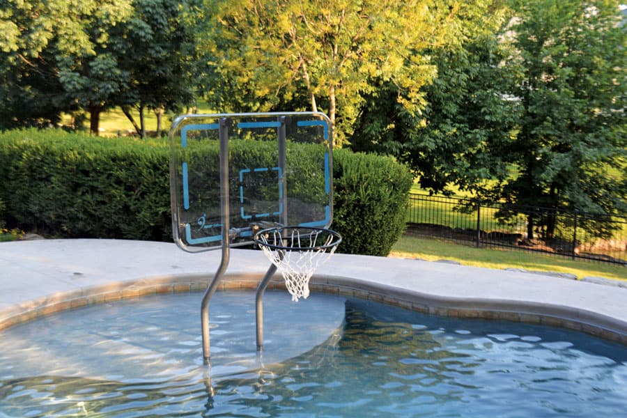 The Pro Style Swimming Pool Basketball Goal comes with a tough, impact resistant polycarbonate backboard that will stand up to hours of pool fun in the sun! The support legs come standard in a corrosion resistant marine grade stainless steel finish. Built to be salt-pool friendly. Comes complete with backboard, net, ball, pump, and needle.