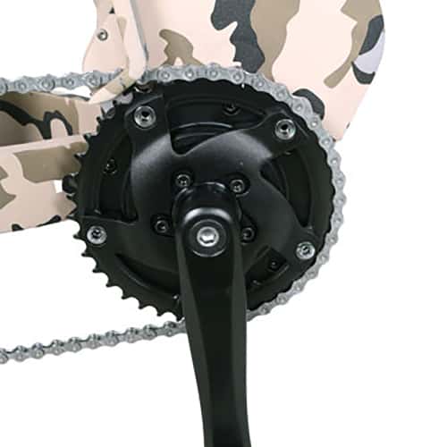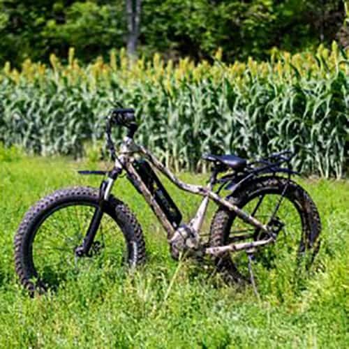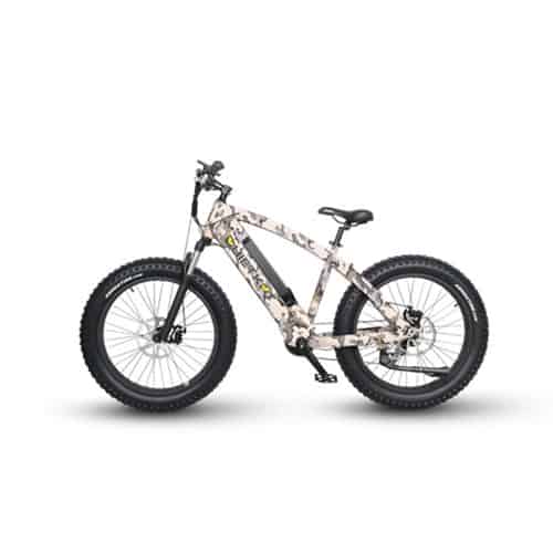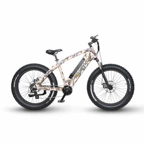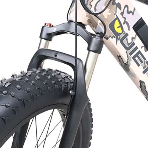 The QuietKat AMBUSH Electric Bike is a rugged fat tire electric mountain bike with the power and performance for traveling the most challenging off-road terrain, while staying within the power limit of most national forests and bike paths. With 750 Watts of pure power, The Ambush can easily carry up to 300 pounds and has a 20-mile range with an unassisted max speed of 25 MPH. This electric bike features mechanical disc brakes, a coil-spring front suspension fork for a smoother ride, and a wide-range 8-speed gearing system to handle most riding situations.