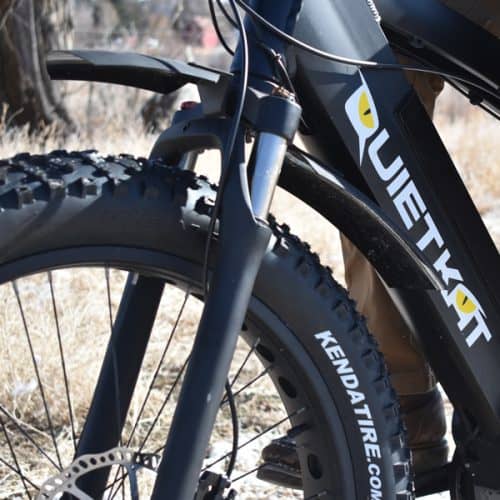 The QuietKat Black Front & Rear Fenders make a tremendous difference when you are riding roads or trails that are wet or muddy from drizzle, recent rain, or snowmelt. The durable plastic is readily attachable to seat posts and fork at 5 inches wide. Without these fenders, chain, derailleurs and brakes will all get sprayed with mud and water which could ruin the metal parts of your FatTire mountain bike.