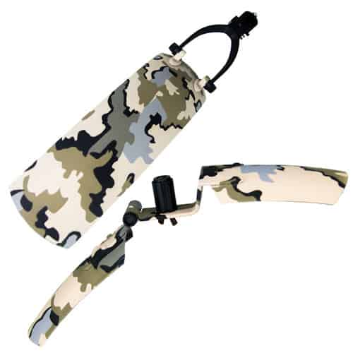 The QuietKat Camo Front & Rear Fenders make a tremendous difference when you are riding roads or trails that are wet or muddy from drizzle, recent rain, or snowmelt. The durable plastic is readily attachable to seat posts and fork at 5 inches wide. Without these fenders, chain, derailleurs and brakes will all get sprayed with mud and water which could ruin the metal parts of your FatTire mountain bike.