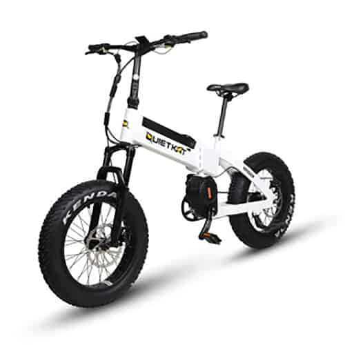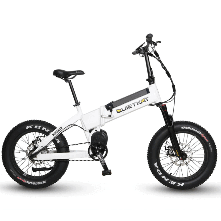 The QuietKat VOYAGER Electric Bike is a portable electric bike, featuring a folding frame and folding steering column, carbon belt drive, internal motor, and 3-speed internal gearing. The Voyager features the latest 750W or 1000W Ultra-Drive motor and hydraulic disc brakes for maximum control. This model is ideal for the outdoor enthusiast or boat owner who needs a compact mode of transportation.