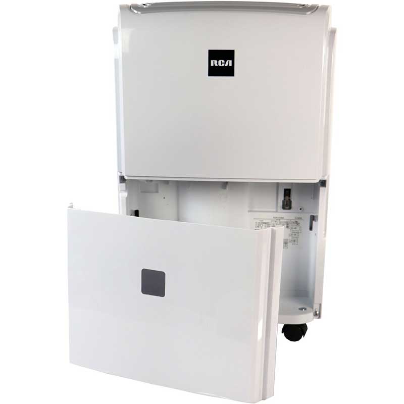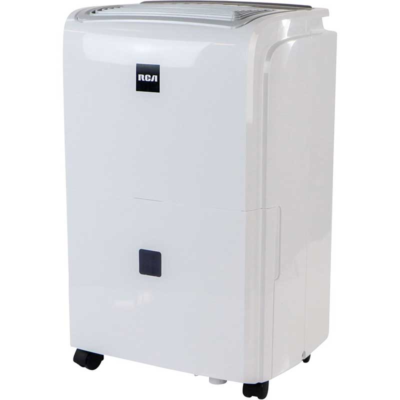 The RCA 50-pint dehumidifier removes up to 50 pints of moisture from the air per day, working quickly to absorb moisture from any space in your home. Can be placed in various locations throughout your home or apartment, including attics, bathrooms, bedrooms, garages, and more. Convenient and easy to use equipped with an adjustable humidistat display and 2 different fan speeds. With auto-defrost function, an automatic shutoff, and a clean filter alert. Continuous draining option make hands free emptying no hassle.