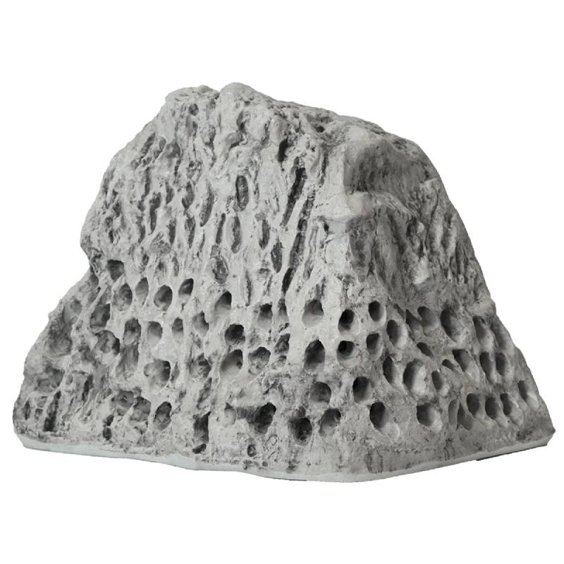 Top rock accessories are the perfect vented weatherproof disguise for your subscape subwoofer. Made from classic Rockustics materials, the Subscape top rock is sure to provide lasting and durable camouflage for your landscape sound system. You’ve chosen to use the nature-inspired Top Rock vent cover on your Subscape subwoofer instead of the traditional mushroom-shaped cap that comes standard with the Subscape. Because the Top Rock must sit flush on the ground, it will be necessary to adjust the depth that the Subscape subwoofer is placed in the ground. To ensure your Top Rock sits flush on the ground, the subwoofer should be buried such that the Subscape vent tube pipe extends 4” above the final landscaped surface. This depth should include any bark mulch, grass, or other material that may be placed under the Top Rock. The Top Rock may be removed from the Subscape vent tube pipe to facilitate cleaning, but care must be taken to ensure debris and water (dirt, leaves, bark mulch, rain, etc.) do not enter the Subscape vent tube pipe while the Top Rock is removed. Any foreign matter inside the Subscape vent tube pipe will negatively affect the sound and performance of the subwoofer and is extremely difficult to remove.