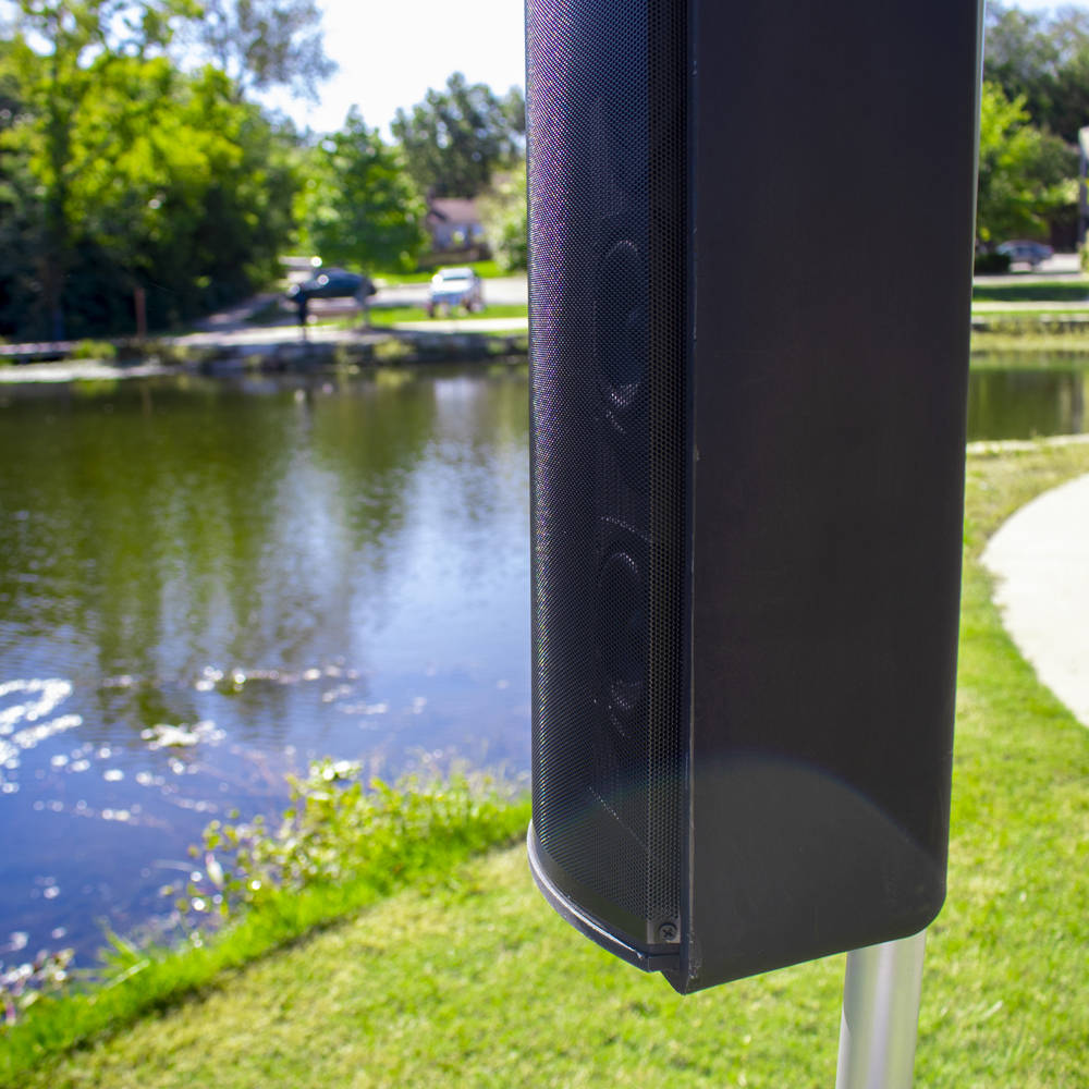 The Rockustics XT-Spyke Pole Mount Speaker is not a typical line array column loudspeaker. Its advanced LAPS (Line Array-Point Source) 2-way design provides a very short near-field extent and robust far-field performance. The XT-Spyke is also UV resistant, scratch resistant, chlorine resistant, and weather resistant with professional-grade components for long-lasting performance and durability. Frequency tapering of low and high frequency pass bands allow the XT-Spyke to maintain a more consistent ratio of array height to radiated wavelength, ensuring a stable vertical beamwidth that out performs many other single box line arrays. Featuring eight 3.0-inch woofers and eight 1-inch high frequency drivers for extremely smooth high frequency response, the XT-Spyke achieves superb coverage in an enclosure measuring only 37.37″ x 6.80″ x 5.50″ and includes pole mounting options.