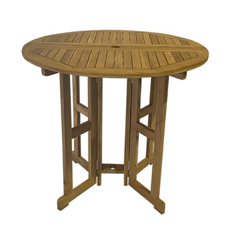 The 45″ Round Bar Drop Leaf Table is perfect for entertaining. Both sides of this Royal Teak Collection 45″ Round Bar Table fold down for easy storage, Seats four bar stools comfortable, and is made with high end teach with an umbrella hole.