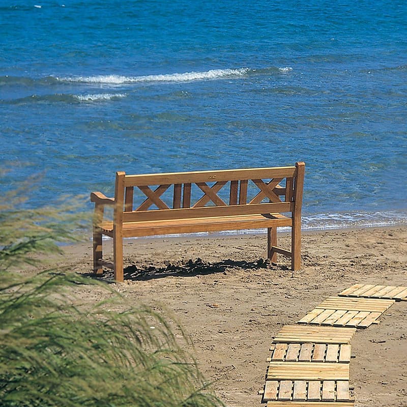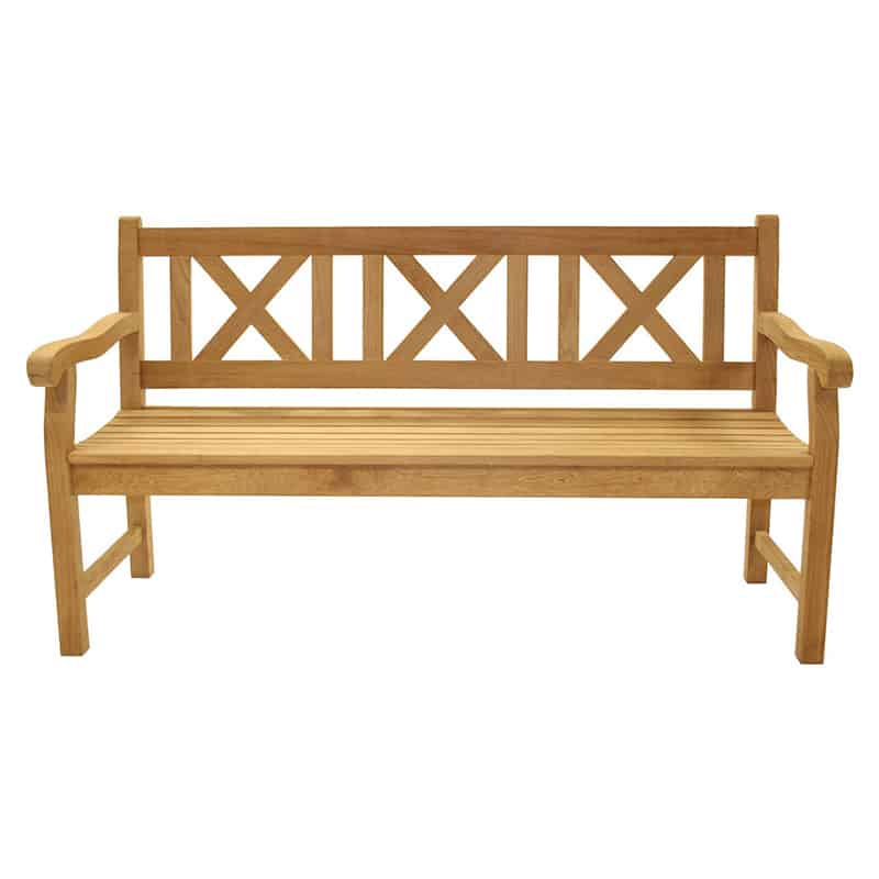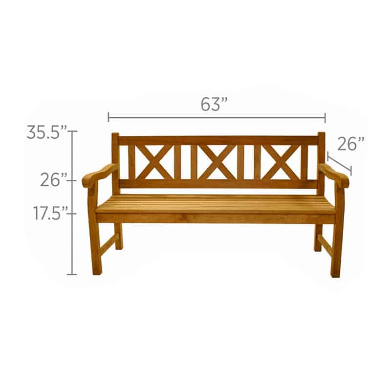 The Royal Teak Collection 60-In Skipper Bench offers great comfort, with beautiful cross back design. The premium all-natural teak construction ensures a long-lasting and durable product while the high oil content is naturally resistant to the outdoor elements. The wood is kiln-dried and machine made with mortise and tenon joints for a sturdy construction while the gently curved seat and back offer a comfortable and ergonomic seat. The simple yet elegant design offers a sturdy and reliable patio bench that’s perfect for seating up to (3) people. All Royal Teak Collection furniture is constructed of premium plantation-harvested teak. Teak is a very hard, dense wood that has a high oil content, which makes it naturally resistant to moisture, rot, shrinking, warping, splintering, insects and fungus. If left untreated, teak will naturally age to a beautiful silver-gray.