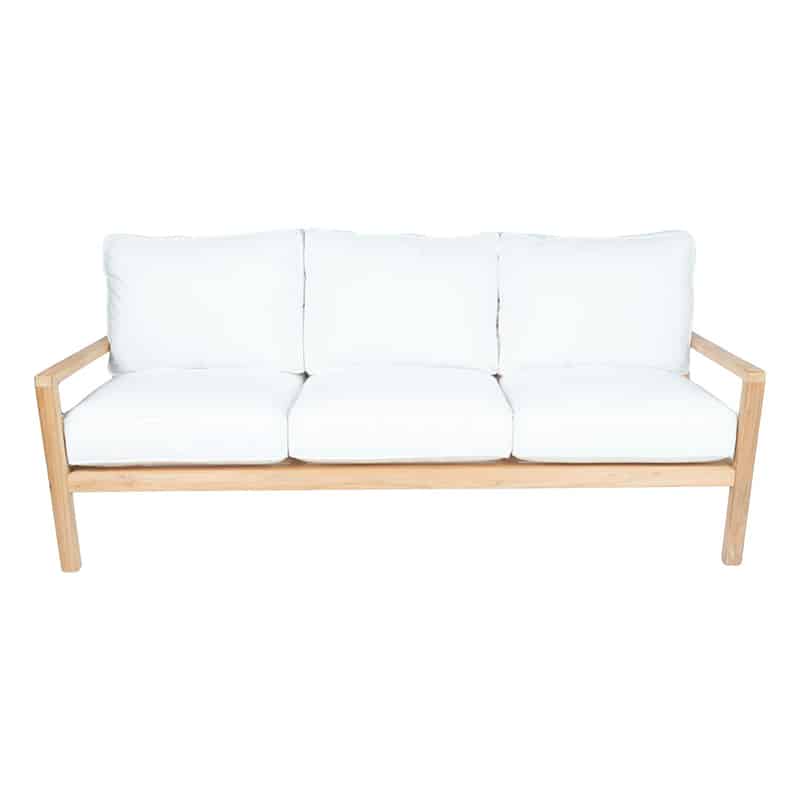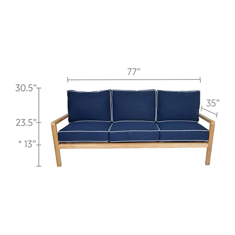 The Royal Teak Collection Coastal Sofa offers a quality patio 3-seater sofa that will fit beautifully into your outdoor area. This wood has been kiln-dried and machine made with mortise and tenon joints for a sturdy construction. A deep cushion with canvas fabric adds a comfortable seating option and is outdoor rated to withstand the elements. The simple “Coastal” design offers a look suitable for any patio décor. All Royal Teak Collection furniture is constructed of premium plantation-harvested teak. Teak is a very hard, dense wood that has a high oil content, which makes it naturally resistant to moisture, rot, shrinking, warping, splintering, insects and fungus. If left untreated, teak will naturally age to a beautiful silver-gray.