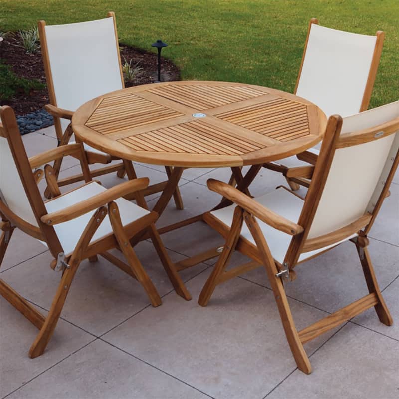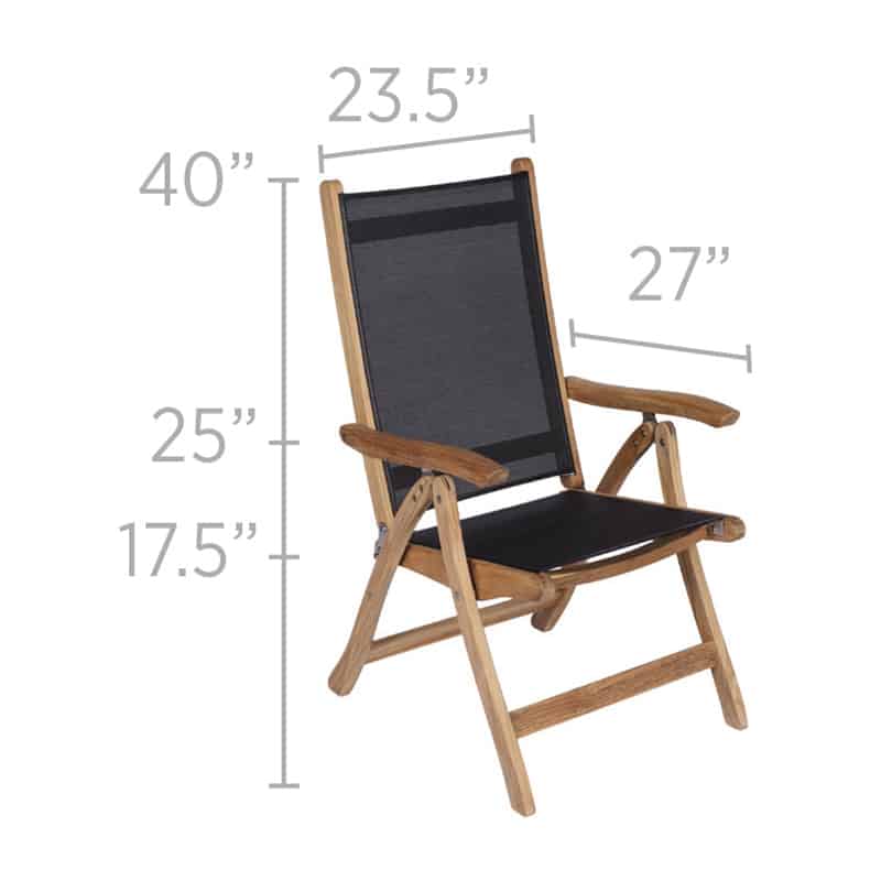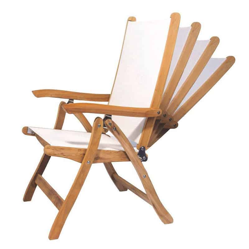 The Royal Teak Collection Florida Sling Chair offers a perfect addition to any patio. In addition to reclining for total comfort, this solid teak chair folds for easy transport and storage. The Textilene Dupont material is the best you’ll find and is replaceable. It reclines to five different positions, so you can be as comfortable as possible, whether you are enjoying a meal outdoors, or just kicking back and relaxing on the patio. It folds flat, so storage and transportation are a breeze. The seat and back are made with a high-quality white sling material that is quick-drying, making it ideal for use around beaches and pools. This vinyl-coated fabric can also sustain any type of climate without fading or deteriorating. All Royal Teak Collection furniture is constructed of premium plantation-harvested teak. Teak is a very hard, dense wood that has a high oil content, which makes it naturally resistant to moisture, rot, shrinking, warping, splintering, insects and fungus. If left untreated, teak will naturally age to a beautiful silver-gray.