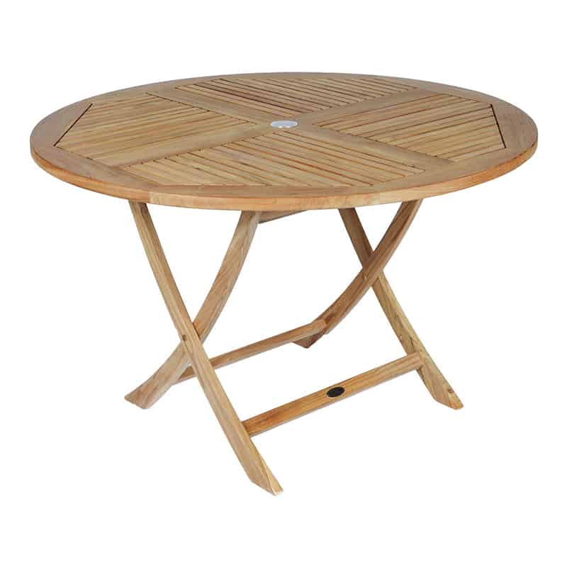 The Royal Teak Collection Round Sailor Folding Table provides a high-quality outdoor patio table to help complete the perfect patio paradise. The premium all-natural teak construction ensures a long-lasting and durable product while the high oil content is naturally resistant to the outdoor elements. The wood is kiln-dried and machine made with mortise and tenon joints for a sturdy construction while the simple round design offers a clean and elegant appearance. The Sailor Folding Tables can easily be folded down for quick removal/storage. Includes 1.5″ and 2″ Umbrella Hole.