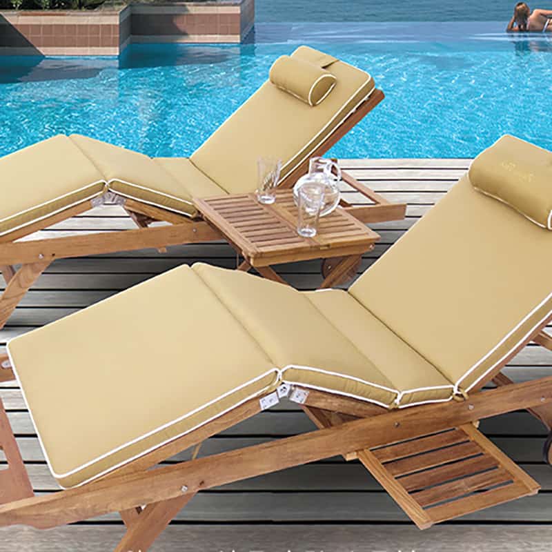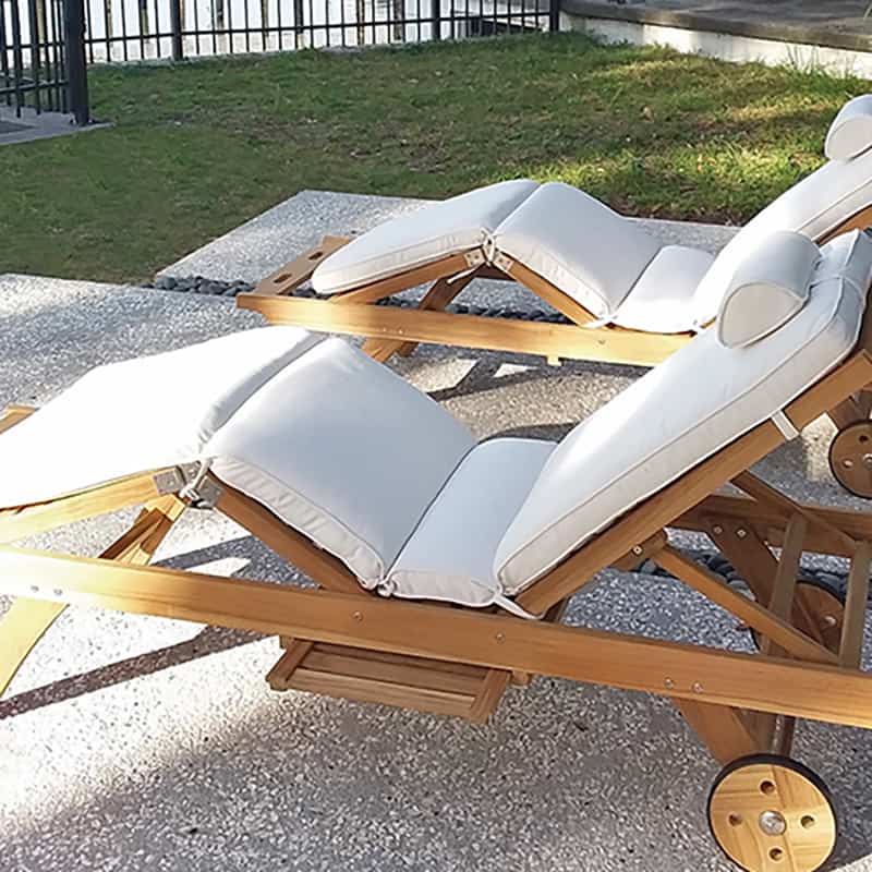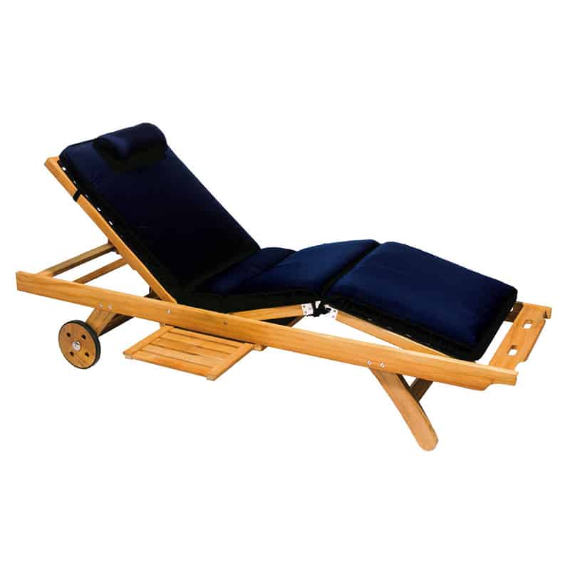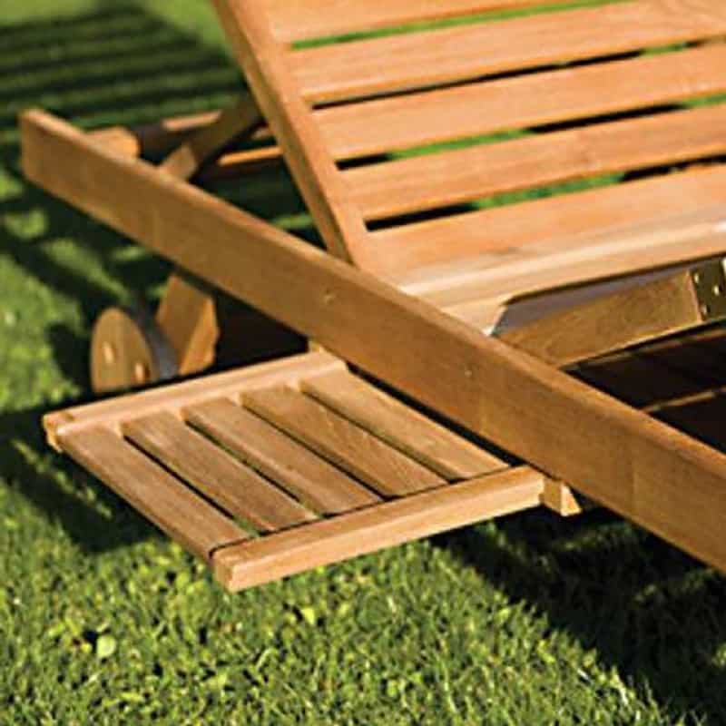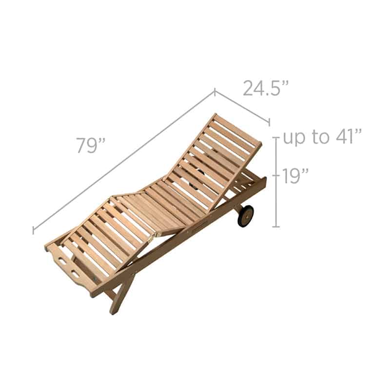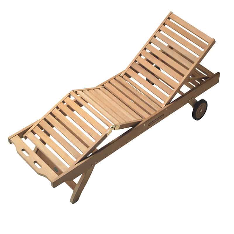 The Royal Teak Collection Sun Bed features a backrest that reclines to (5) different positions and a knee lift that adjusts to (4) positions for personalized comfort. The unique “Sun Bed” design offers a classic look that offers the perfect lounging patio chair for the perfect patio paradise. This wood has been kiln-dried and machine made with mortise and tenon joints for a sturdy construction. This piece also features wheels for easy maneuverability. All Royal Teak Collection furniture is constructed of premium plantation-harvested teak. Teak is a very hard, dense wood that has a high oil content, which makes it naturally resistant to moisture, rot, shrinking, warping, splintering, insects and fungus. If left untreated, teak will naturally age to a beautiful silver-gray.