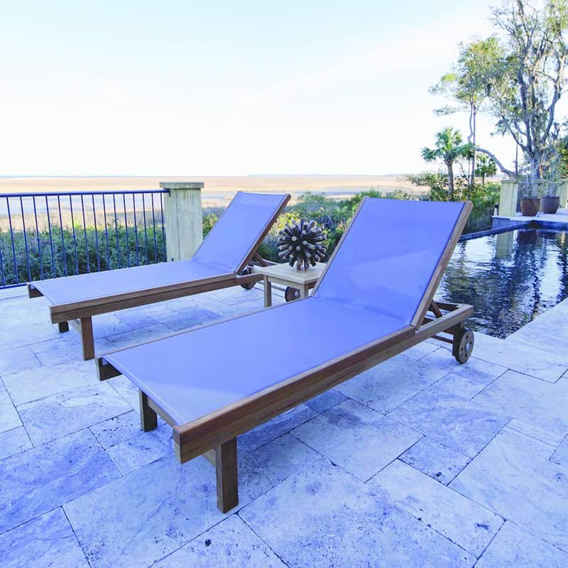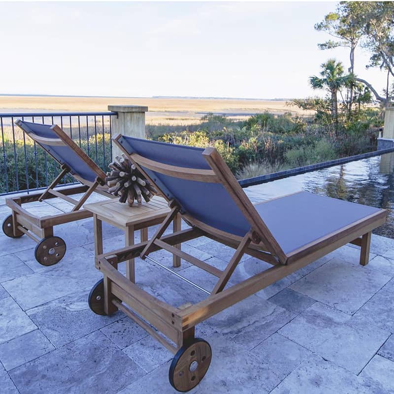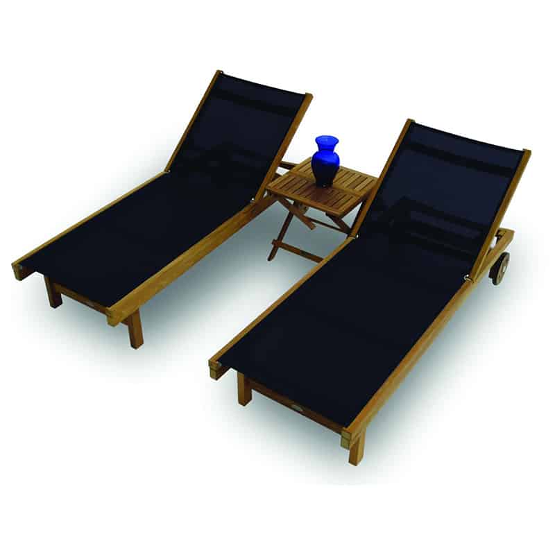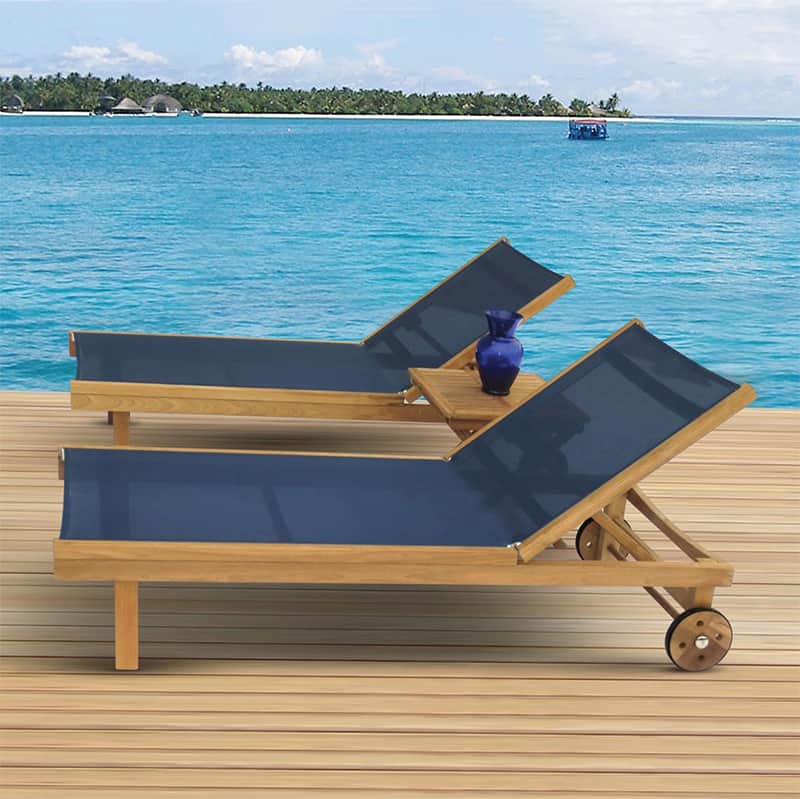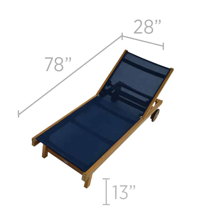 The Royal Teak Collection Sundaze Sling features adjustable backrest that reclines for maximum comfort and the two back casters provide mobility. The chair seats and backs are made with a high-quality black sling material that is quick-drying, making it perfect for use around beaches and pools. This vinyl-coated fabric can also sustain any type of climate without fading or deteriorating. This wood has been kiln-dried and machine made with mortise and tenon joints for a sturdy construction. A deep cushion with canvas fabric adds a comfortable seating option and is outdoor rated to withstand the elements. his inviting outdoor chaise lounge is the perfect spot for curling up with a book, relaxing with a drink or sunbathing. All Royal Teak Collection furniture is constructed of premium plantation-harvested teak. Teak is a very hard, dense wood that has a high oil content, which makes it naturally resistant to moisture, rot, shrinking, warping, splintering, insects and fungus. If left untreated, teak will naturally age to a beautiful silver-gray.