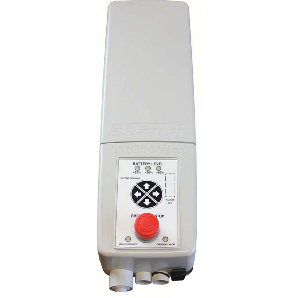 The S.R. Smith Lift Operator Intelligent Control is the most technologically advanced pool lift control on the market. With an emergency stop button that can stop the lift mid-cycle and an audible safety alert that can bring a stranded user to the attention of your facility personnel, the Lift Operator ensures user safety. The control’s internal memory stores information about pool lift usage that can be pulled onto a standard USB drive, and uploaded onto your computer for analysis. Includes: Mounting Plate, Lock, Battery, Charger, and LiftOperator Control Unit. Hand Control sold separately.