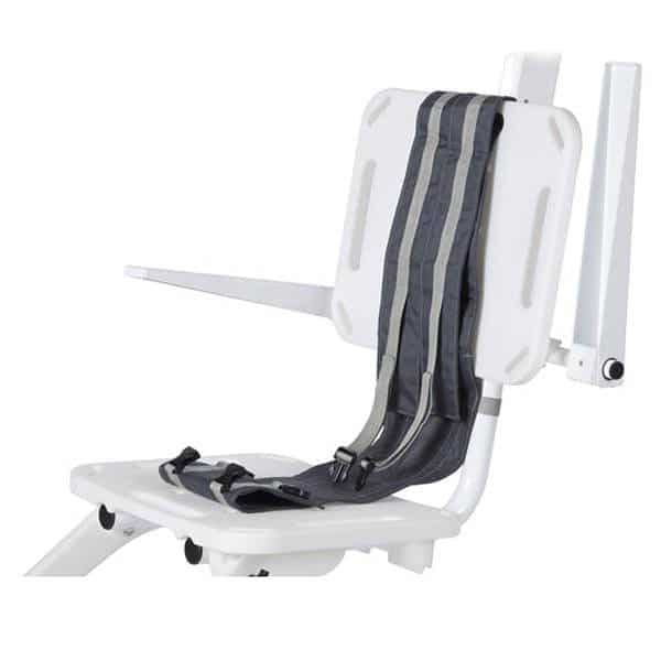 The S.R. Smith Stability Vest was designed to facilitate the transfer of individuals with limited or no independent upper body or trunk stability. The vest attaches the user to the chair, strapping them in for support. This vest is only compatible with MultiLifts with the folding seat, or all models of pool lifts manufactured prior to 2016.