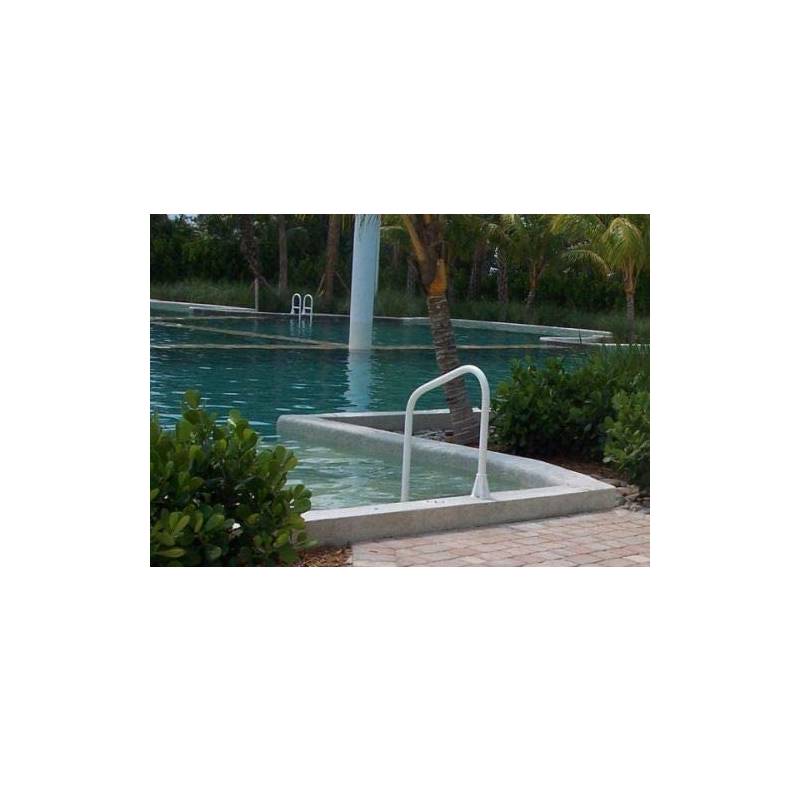 The Saftron high impact polymer railings are made of specially formulated compounds to ensure longevity and unparalleled resistance to the elements, UV, and chemicals while requiring virtually no maintenance. They are guaranteed to keep their smooth, bright finish for many years. Saftron 2 Bend Deck Mounted Handrails contain fully reinforced, encapsulated marine grade aluminum which provides superior strength and durability. This rail can be ordered custom for size, number of bends, or color.