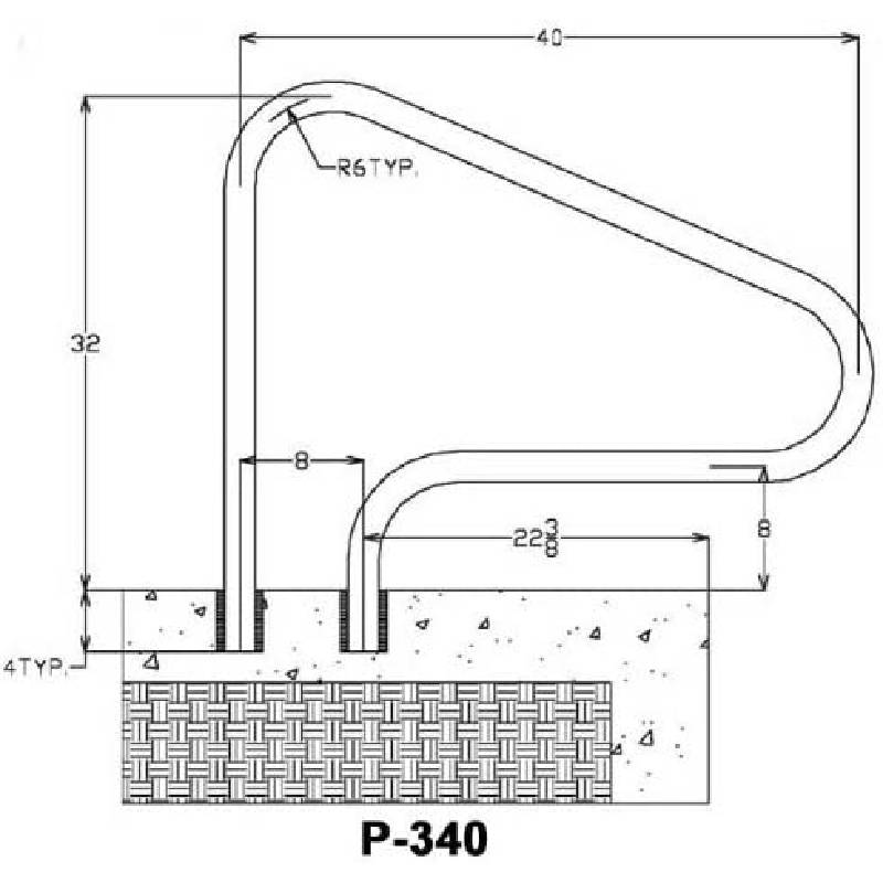 Saftron RTD-340-B 40″ Beige 3-Bend Return-To-Deck Figure 4 Grab Rail Features: