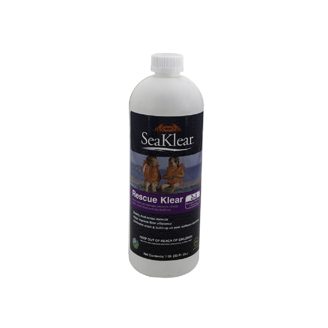 The SeaKlear 90180SKR Rescue Klear reduces scum lines and clears cloudy water. It blends powerful enzymes and a clarifier to quickly and effectively clean up oils from bathers and vandalism, as well as dead algae. Suntan oils and lotions can cause buildup on the waterline or in the filter media. Rescue Klear tackles the problem using enzymes to degrade oils, lotions and more. It also uses our highly effective clarifying technology to clear cloudy water and allow the filter to remove pollutants.