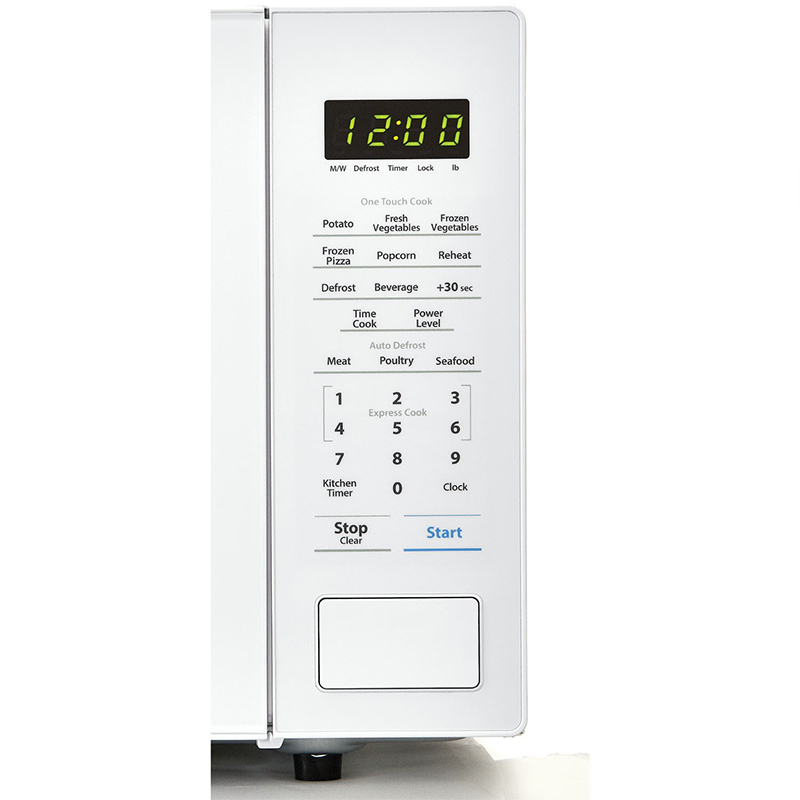 - One-Touch Cook menu includes potato, fresh vegetables, frozen vegetables, frozen pizza, popcorn, reheat and beverage