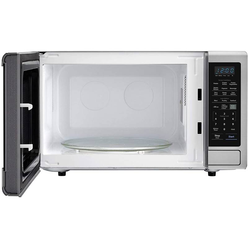 - Premium stainless steel countertop microwave oven with 16″ removable glass turntable